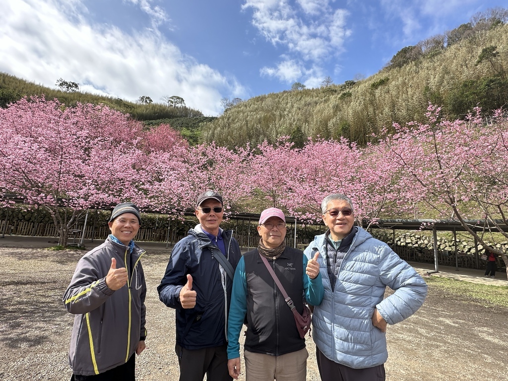 八五山甜柿森林露營區櫻花滿開。八五山泉山莊。鱘龍魚料理大餐。