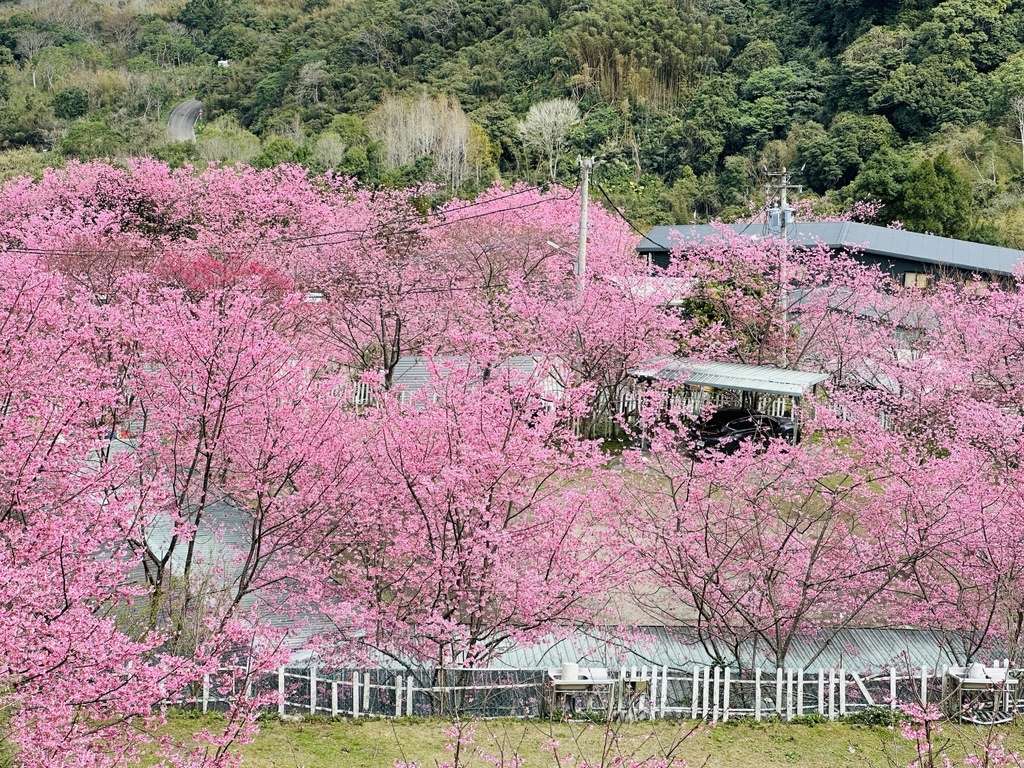 八五山甜柿森林露營區櫻花滿開。八五山泉山莊。鱘龍魚料理大餐。