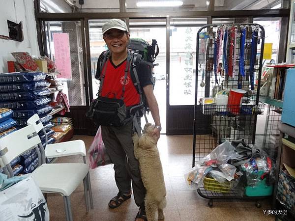 (披披掛掛一身,愛犬巧餅知道[阿公]要出遠門,抱著不肯放依依不捨的模樣