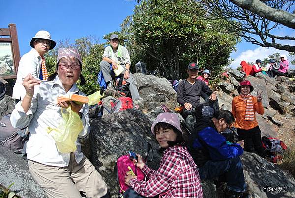 走過大石壁也到了午餐的時間,這是大家最放鬆心情的一刻,山下帶上來的便當,