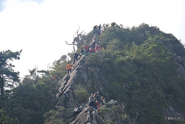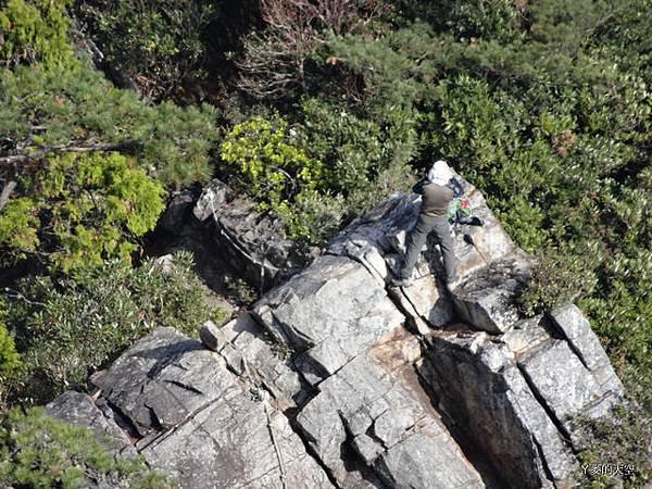 下鳶嘴山是一段非常陡峭的岩壁 ,因為有他隊登山人懼高不敢下去,讓後面的人在
