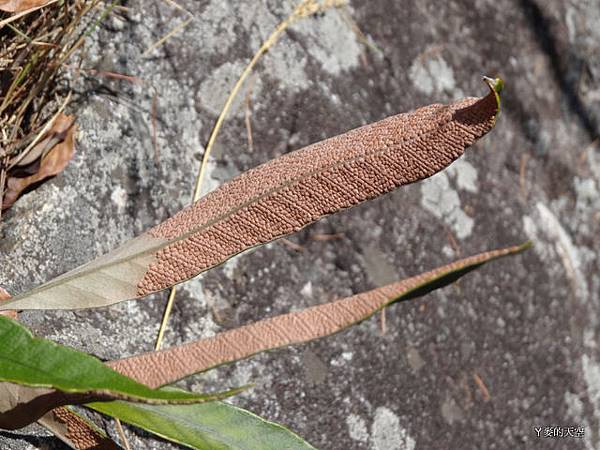 岩壁上的蕨類植物,業被佈滿著圓形的孢子囊群,未成熟時淺褐色,成熟後則轉