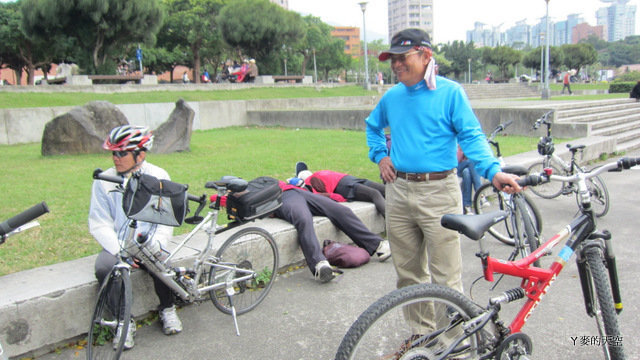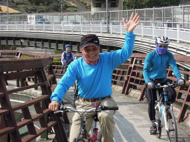 林會長邊騎邊停,關心每一個同伴有沒有跟上來或騎叉了路,照顧我們的
