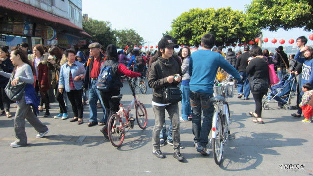 騎,只能在人群中牽著車子緩慢穿縮前進。