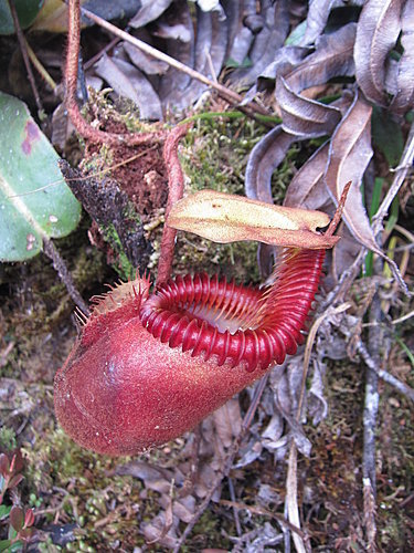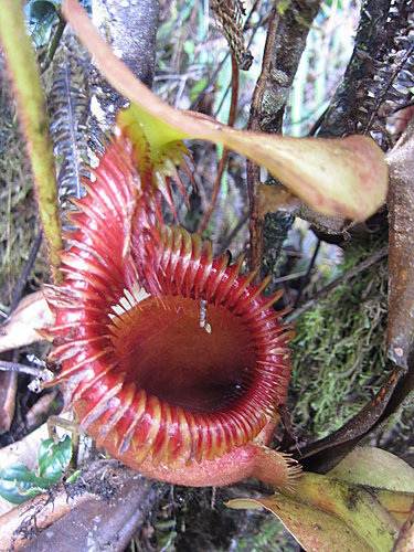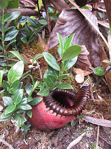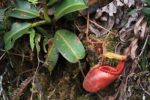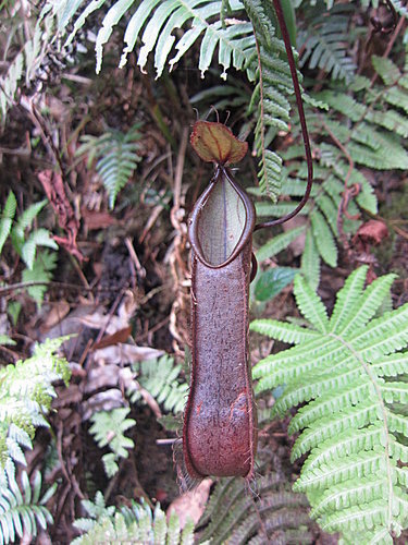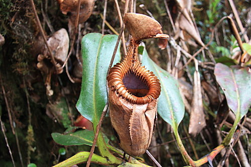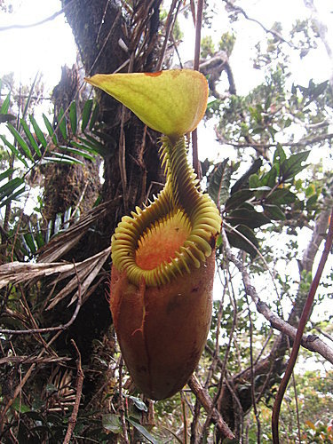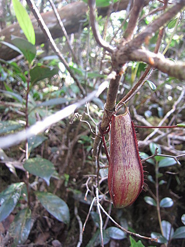 在園藝中心或花市看過小巧的豬籠草,原始森林步道上發現豬籠草