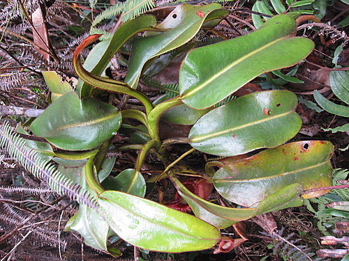 豬籠草的高度從 一米 到 三米 都有,分成三部分,葉片長橢圓形,葉片中脈