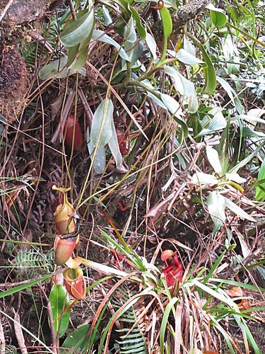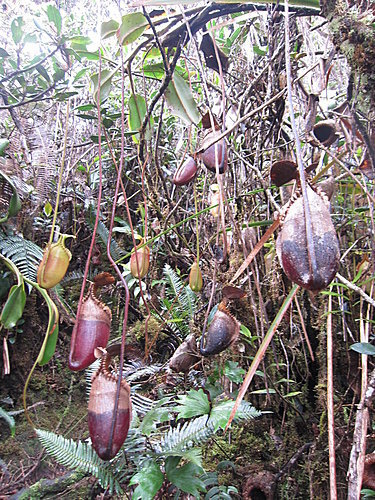 有能生長成一大叢植株,像這一帶的小斜坡上,垂垂掛掛著數十個豬籠草。