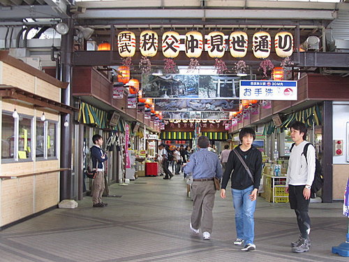 再等待接駁車時,先逛逛車站的商店街,米果、仙貝、和果子、紀念品、醃漬醬菜