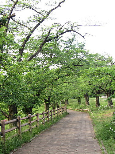 自然綠色的氛圍 ,翠綠的樹種是染井吉野櫻和八重櫻,大約有一千多株,春櫻綻放的