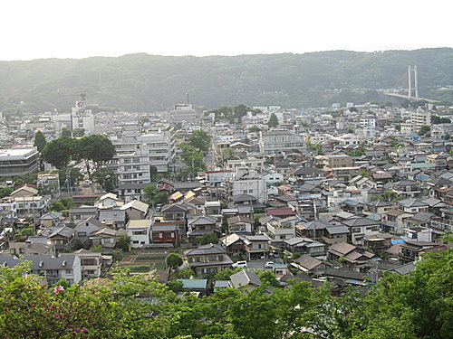 在高台上俯瞰秩父市的城市景觀,沒有高高的樓層大廈,清靜祥和的城市。