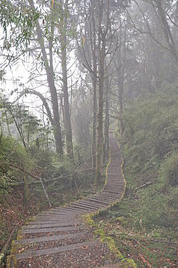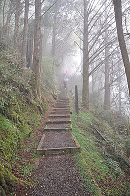 霧氣瀰漫山林區,只要不下雨就 能按行程計畫進行。