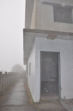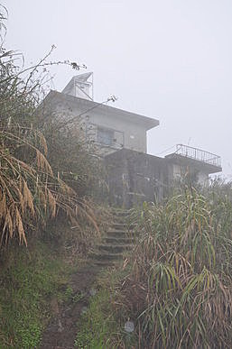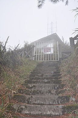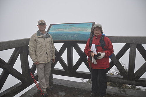 大塔山頂有一塊平坦的大岩石,怎奈霧鎖峰頂不見蹤影。