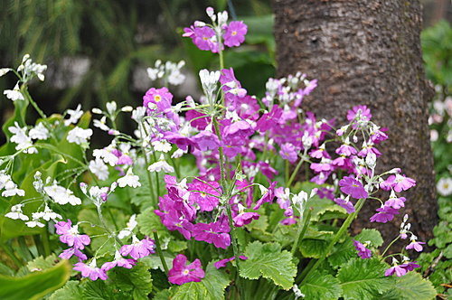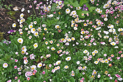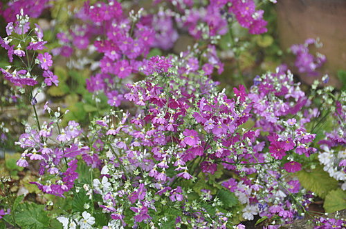 姹紫嫣紅滿庭栽,紅、白、紫小巧嬌豔。