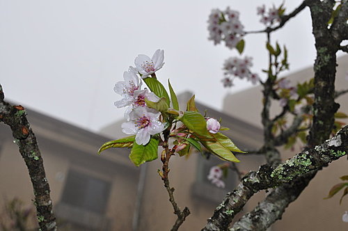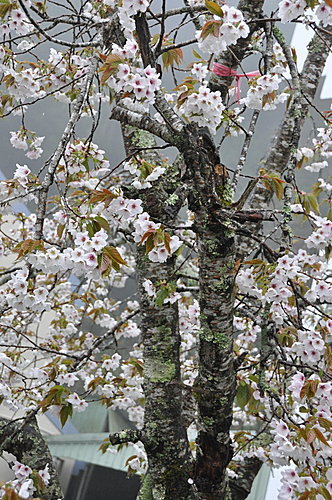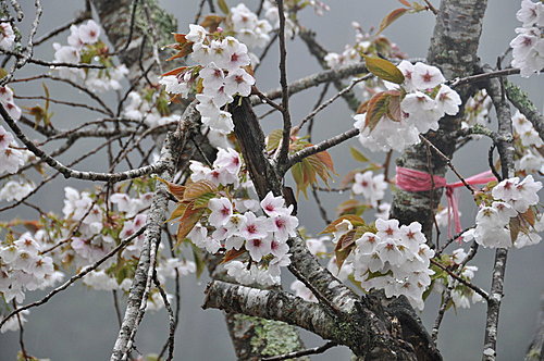 花樹旁立著[普賢象櫻],應是阿里山最後一波開放的櫻花,含苞中。