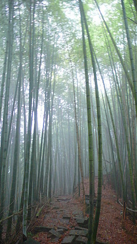 霧氣瀰漫的孟宗竹林,深幽靜謐。