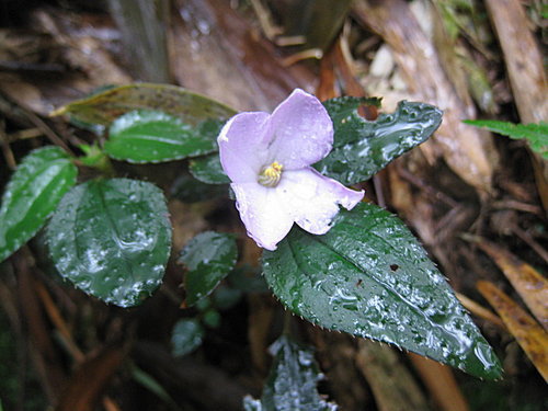竹林下邊坡 上的肉穗野牡丹一叢叢,粉紫紅色的花朵在雨中嬌柔無比。