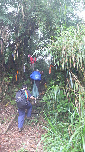 雨停了,12點10分鳳凰山南峰前小木梯往上行。