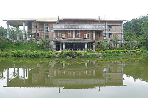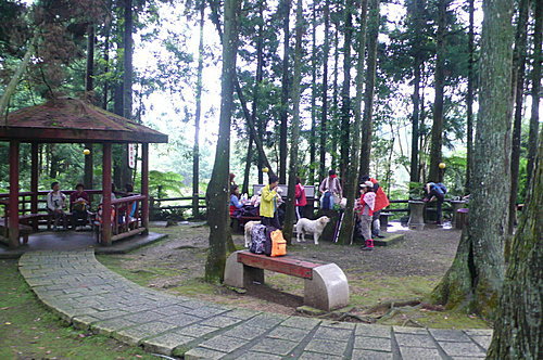 向天湖農場休憩涼亭,徵得農場餐廳的同意在林蔭樹下作我們的午餐。