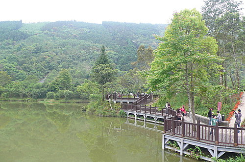 向天湖畔散步,青山圍繞的向天湖海拔七百多公尺,因為地勢比較高,冬春之際經常霧氣