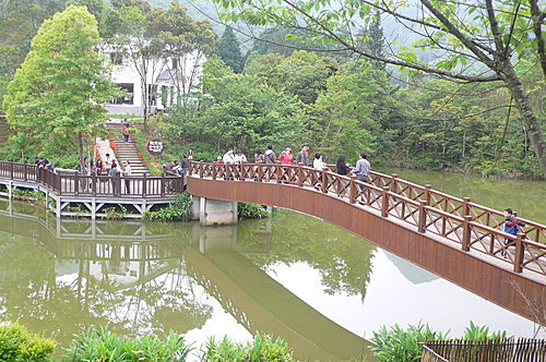 拱橋、曲折步道是遊人駐足賞景的好地方。行匆匆抓不住向天湖的夢幻。