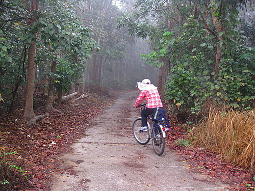 沒有變速功能的淑女車,稍稍有坡度的產業道路也無法爬上去,只好下來用牽的上山啦。