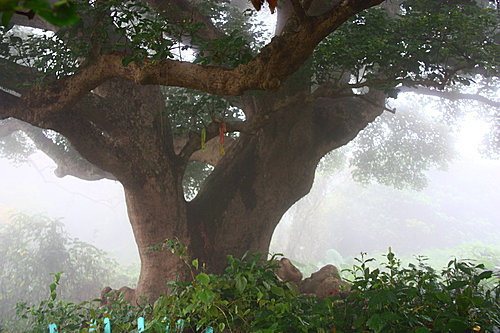 迷霧中的神茄,有一百多年的樹齡,鬱鬱蔥蔥傲然挺立。