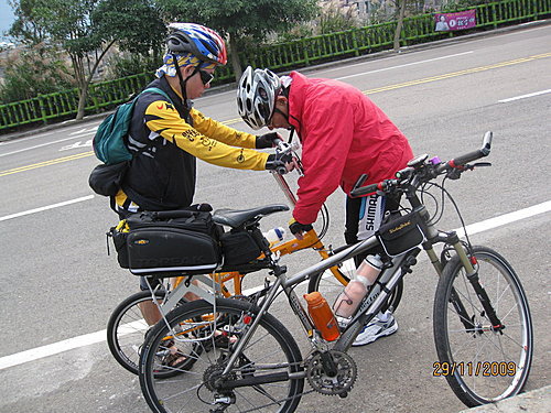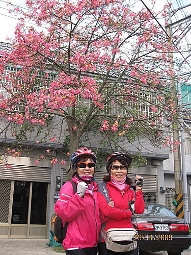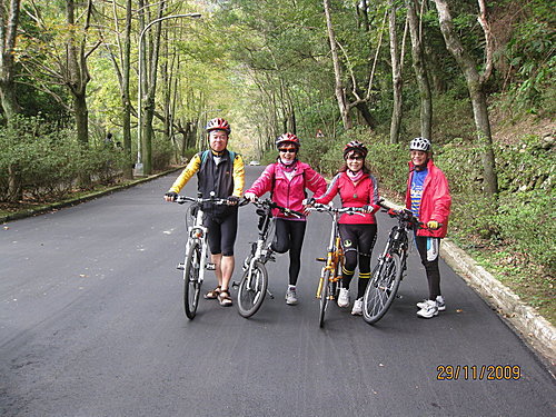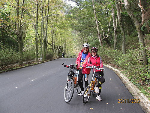 還是大輪子公路車跑得快,男人們踩一圈,我們小輪子要踩兩圈,兩隻腳忙不停,還是遠