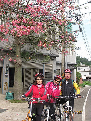 今天的風有點大,小折輕巧,沒靠好容易倒,好不容易騎到徐爸爸等待的轉角處,幫忙