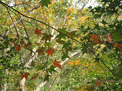 冷氣團的冷度還不夠讓青楓變色,槭林公園綠意猶濃。