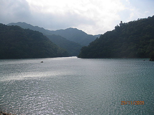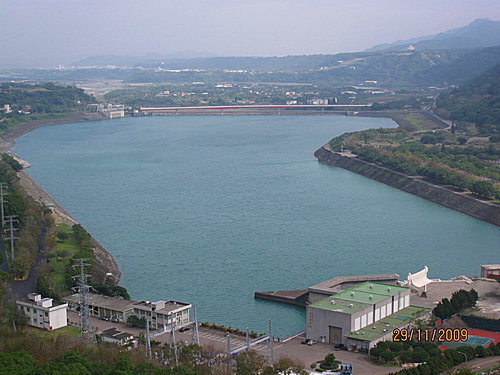 在壩頂上眺望石門水庫青山綠水的秀麗景致。原本打算經過環翠樓、溪洲公園,繞一圈再