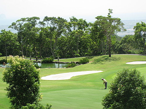 礁溪高爾夫球場,碧綠草坪上高球人士揮汗揮桿。曾經也對高爾夫球充滿好奇過,還拜師學