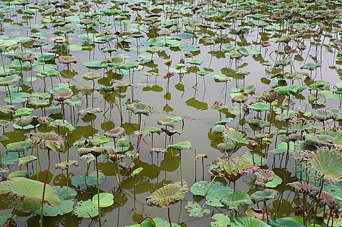 白河蓮花是知名的蓮花之鄉,夏天的尾聲部分蓮花池荷盡葉枯。