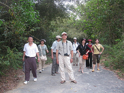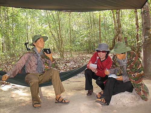 越南的天氣真的很熱,陽光炙人,雖然身處樹林中,還是汗流濕衣,工作人員得在林間步