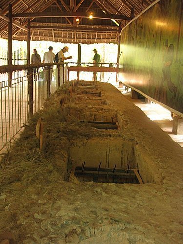 地道長約二百五十公里,分為三層,四通八達,串通村落遠達柬 甫寨。