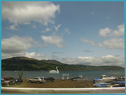 日本之行中唯一的知名景點~~山中湖,距離我們作客的山中村極近,步行十分鐘就可