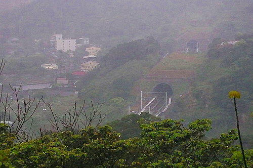 遠眺高鐵火車過山洞,隆隆聲響震山谷。