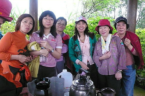 避雨涼亭泡茶道具擺上來,金萱 、凍頂 、玉山烏龍茶,熱熱一杯暖心懷。