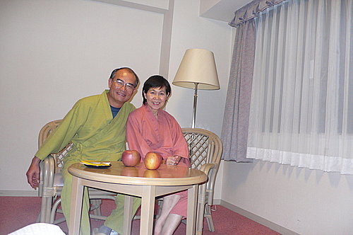 下午的班機飛到福岡, 到達飯店已是晚間九點多, 領隊為大家準備一份泡麵和一顆蘋果