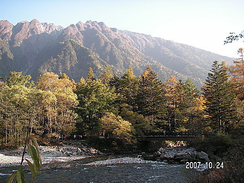 梓川兩岸都有自然散步道 , 連接兩岸的是田代橋和河童橋 , 右岸森林步道