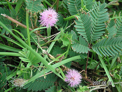 含羞草 多年生亞灌木 春末秋中開花 圓球形的花朵