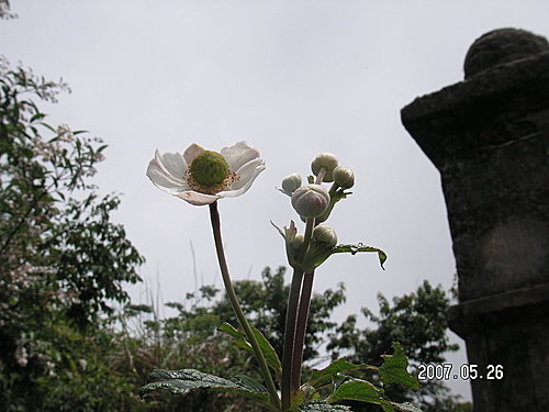 李棟古堡內小白頭翁生長得很好很多 白色的花朵清麗可愛.