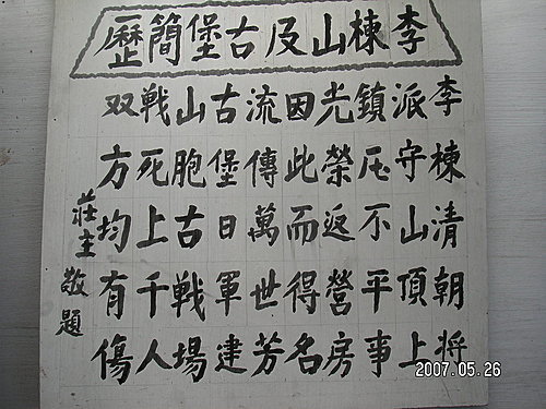 莊主題字 李棟山及古堡簡歷