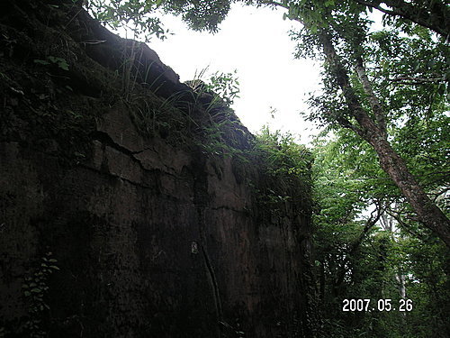 到達山頂上的 李棟古堡 牆頭上雜草叢生 牆面是古老斑駁