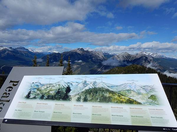 看板上記錄著眼前的山峰,一字排開讓遊客對照著認識山峰。