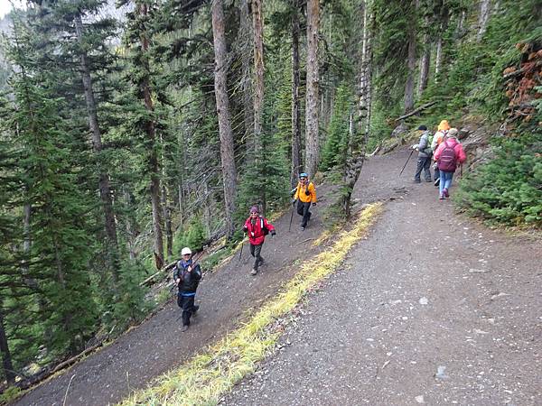 這一天只有我們是走路下山的,慢慢走入針葉森林步道。