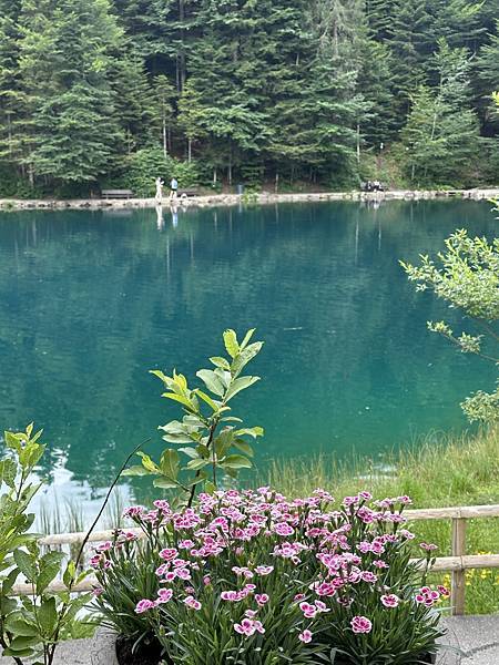 湖面平靜無波如鏡,水色會隨著光線有不同的色彩。