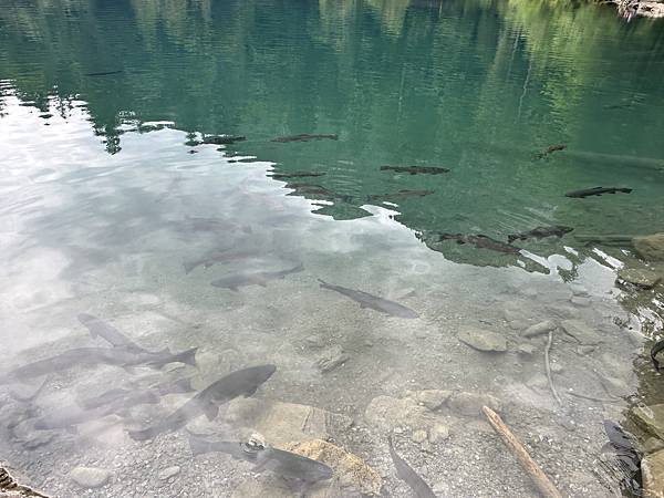 藍湖水質清澈優質零汙染,是鱒魚最佳的生長環境,鱒魚在湖中自在悠游。
