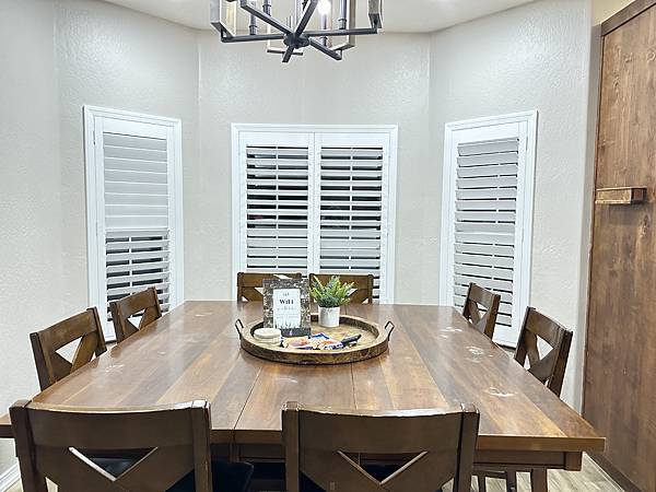 餐廳的木製餐桌有厚實感滿大的