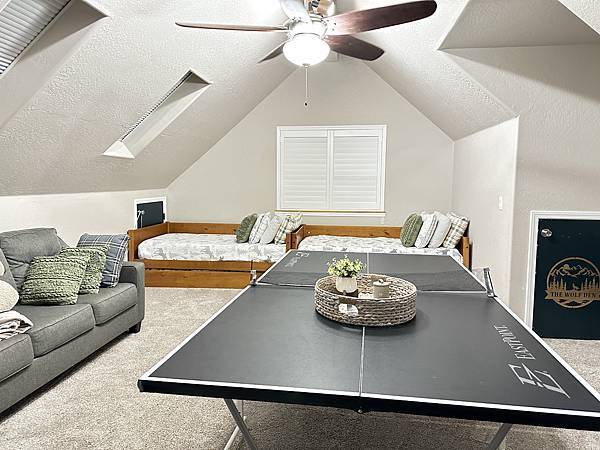 比較特殊的額外房間有兩張單人床,乒乓桌好像可以打乒乓球運動一下喔。