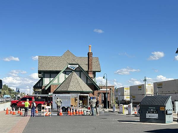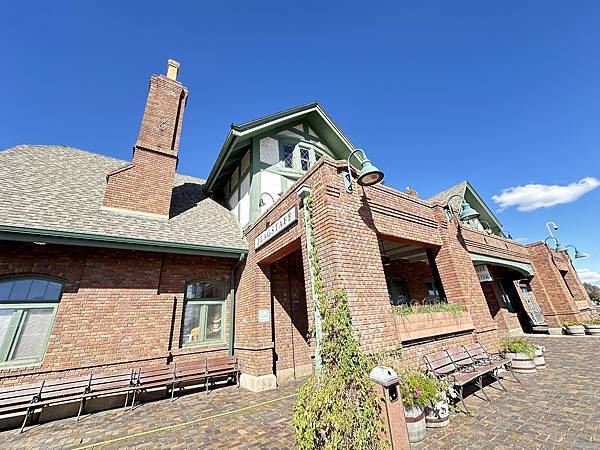 火車站建築,一邊是遊客中心,另一邊是還在營運中的車站。